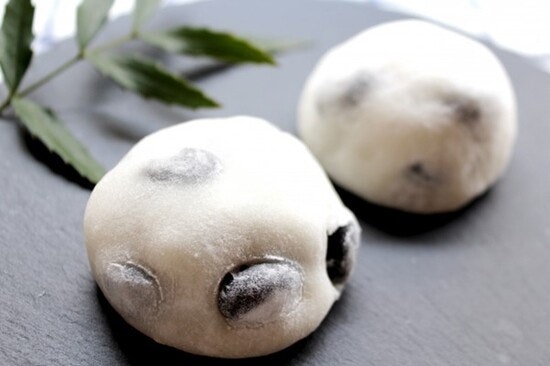 The beans kneaded into the mochi are typically red azuki beans, which bear a reddish-brown color. These beans are boiled with a hint of salt, imparting a subtle salty flavor. As a result, when enjoyed with anko, the beans' saltiness enhances the filling’s delicate sweetness.